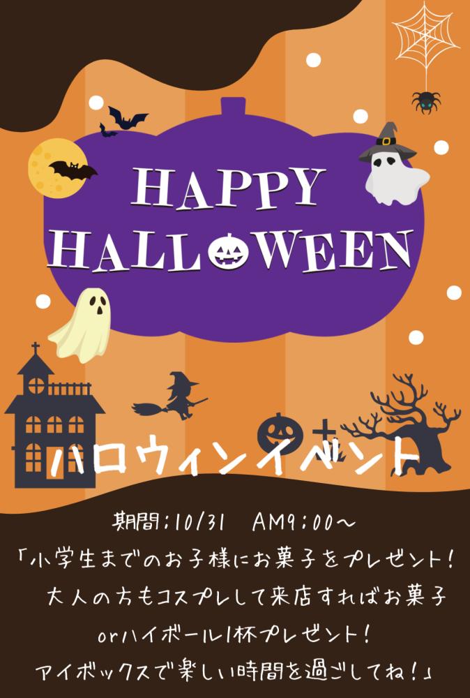 2025年10月26日 ハロウィンイベント いつもご利用いただきありがとうございます。 iBOX折尾店では10/31日のAM9:00からハロウィンイベントを行います♪♪ ワンポイントのコスプレでも大丈夫です。 当日限りのお得なサービスとなりますので是非ご来店ください^0^V ご来店お待ちしております。