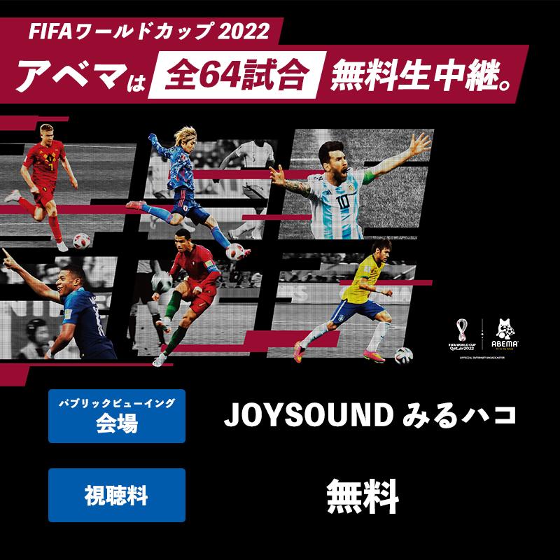 2022年12月3日 JOYSOUNDみるハコにて観戦できます! FIFAワールドカップ2022を ABEMAにて配信! 会場JOYSOUNDみるハコにて 観戦できます!! iBOX折尾店で仲間と みんなで応援しよう! ・日本VSクロアチア〔12月5日 月曜日 24時スタート〕