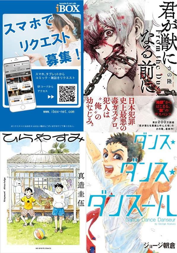 2022年4月29日 リクエストコーナー更新!! 今回、リクエストにより追加入荷したコミックを紹介します! ★入荷コミック★ ・ダンス・ダンス・ダンスール ・君が獣になる前に ・ひらやすみ 他にもマンガ大賞作品や春期アニメ・ドラマ化作品など 多様なコミックを取りそろえています♪ 是非、この機会に自分好みのコミックを見つけてみませんか? ご来店お待ちしております^^v