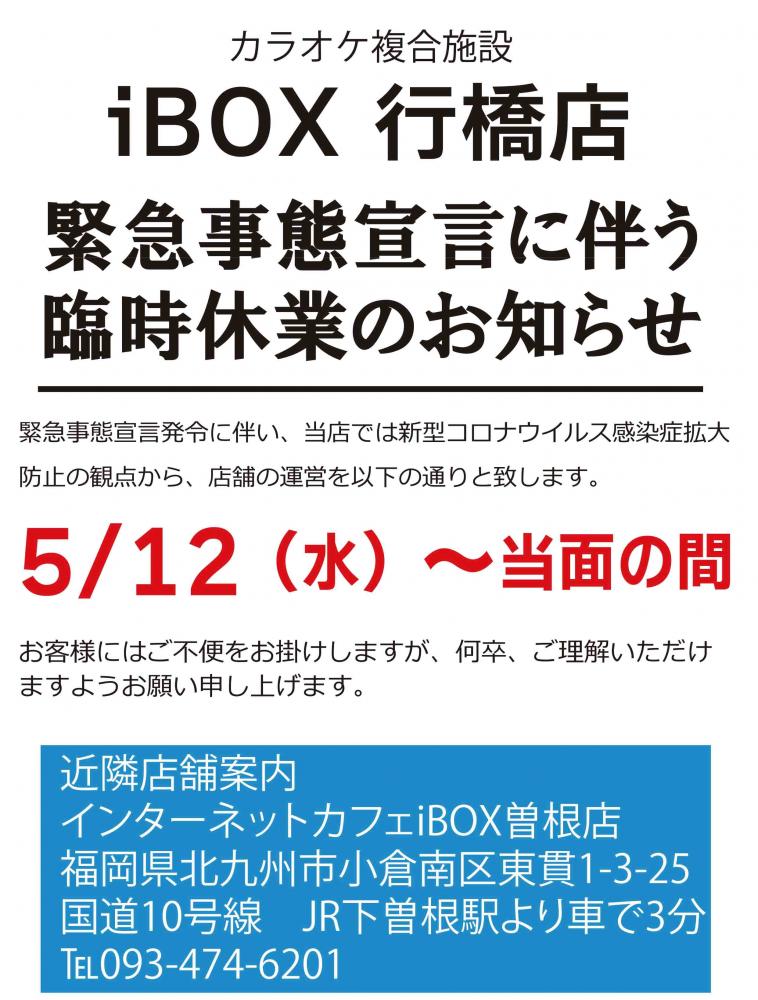 2021年5月11日 臨時休業のお知らせ コロナウイルス感染拡大による政府の緊急事態宣言に伴いお客様と従業員の安全を考慮し臨時休業とさせていただきます。 【期間】 2021年5月12日(水)〜当面の間 【一時休業店舗】 ・iBOX行橋店 再開時期につきましてはホームページにてご案内させていただきます。 ご不便をお掛けしますが、お客様のご理解の程、よろしくお願いいたします。