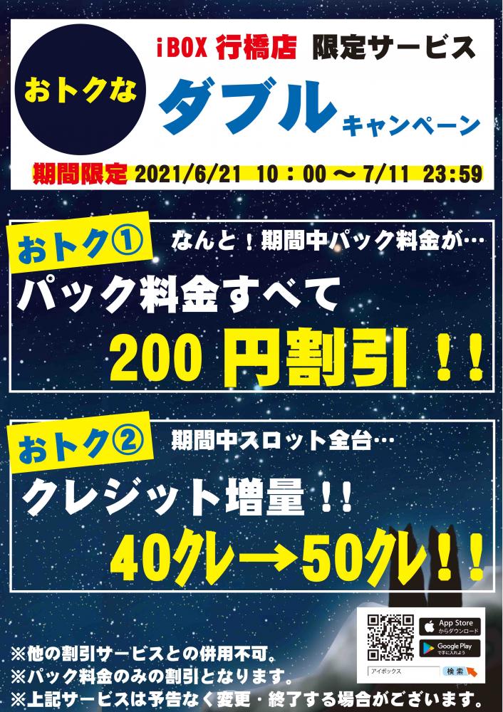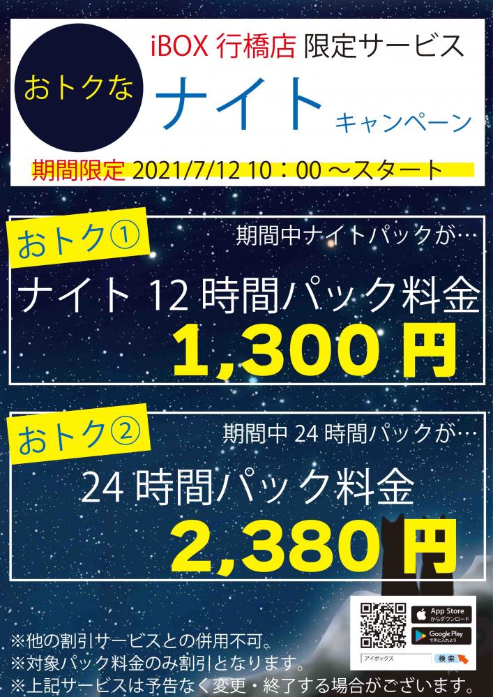 2021年7月11日 iBOX行橋店限定割引サービス! いつもご利用ありがとうございます。 通常営業開始に伴い、お客様へお得なサービスを配信致します。 7/12 10:00〜より ナイトパック12時間 通常1,630円→1,300円! 24時間パック 通常2,970円→2,380円! ぜひこの機会に遊びに来てください。 スタッフ一同、心よりお待ちしております。 ※上記サービスは予告なく変更、終了する事がございます。予めご了承ください。