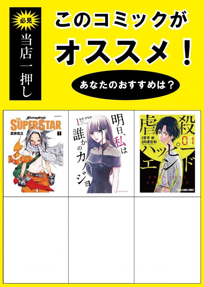 2021年1月26日 おすすめコミック入荷 いつもiBOX曽根店をご利用いただきありがとうございます。 おすすめコミックを入荷いたしました。 ・SHAMAN KING THE SUPER STAR ・明日、私は誰かのカノジョ ・虐殺ハッピーエンド ご来店の際はぜひご利用くださいませ。