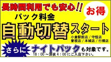 2014年3月14日 ネットカフェ自動切替スタート♪ いつもiBOXをご利用いただきありがとうございます。 ネットカフェのパック料金が自動切換えになりました♪ お客様のご利用した時間に応じて一番お得な料金パックを自動でチョイスします^^ ナイトパックも対象なので夜もとっても安心♪♪ 対象店舗は小倉駅前店、守恒店、曽根店、本城店、行橋店です。※オープン席は対象外です。 ご利用お待ちしております。