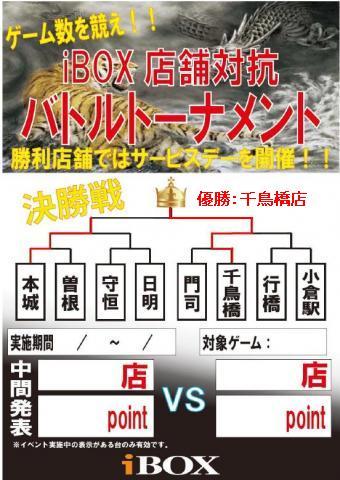 2013年2月23日 店舗対抗iBOXバトルトーナメント いつもご利用ありがとうございます。 12月より開催しておりました iBOXオンラインダーツ導入店舗対抗バトルトーナメントの 優勝店舗が決定致しました。 決勝戦は最終中間発表から400ポイント差を逆転!! 千鳥橋店が見事勝利((o(^∇^)o)) 最終スコアは 本城店 501:3140点 S.CR:1999点 合計5139点 千鳥橋店 501:2709点 S.CR:2504点 合計5213点 その差僅か74点と大接戦でした。 優勝した千鳥橋店ユーザーの皆さん、おめでとうございますヽ(゚Д゚)ノ 優勝店舗の千鳥橋店ではサービスデーを実施致します。詳しい日程、内容は後日店舗にて告知いたします。ぜひ、遊びにいらして下さい♪ ご参加いただいた各店舗のダーツプレイヤーの皆さん、ありがとうございました。今後もイベント等実施していきますので、よろしくお願い致します。また、各店でハウストーナメント、交流会も開催しておりますので、そちらもぜひご参加お願いします。