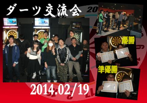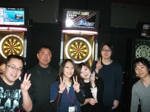 2014年2月19日 ダーツ交流会 だんだんと暖かくなってきたおかげで、本日は12名もの方にご参加頂きました(+・艸・+) 参加者の皆様、本当にありがとうございました(^人^)♪ 今回はダブルスハイアンドロー戦を行いました。 ハイアンドローで実力差がなかったため、ガチンコで試合を行ったところほとんどの試合で3Legまでもつれ、どの試合も大変白熱した試合になりました( ´∀`)b♪ 決勝戦も最後の最後までわからない展開になり参加者全員で盛り上がりました(*´ェ`*) 今後もイベントを開催いたしますので機会がありましたら是非ご参加ください♪