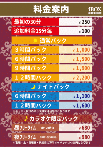 2014年11月7日 料金システムが新しくなりました♪ いつも小倉駅前店をご利用頂き、誠にありがとうございます。 この度、お客様にとってよりご利用しやすい環境づくりを目指し、 新料金体制をスタート致しました!v>▽<v ネットカフェ、カラオケ、ビリヤード、ダーツ、ぜ〜んぶご利用したい お客様!!是非、当店で堪能しちゃってください♪>□</ 料金・利用時間など、詳しくは当店スタッフまで。 皆様のご来店、スタッフ一同心よりお待ち致しております!