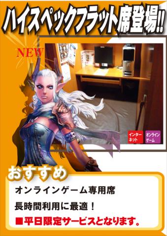 2012年2月12日 ハイスペックフラット席登場! 行橋店にハイスペックフラット席新登場です^^v じっくり、ゆったりオンラインゲームをプレイしたい方には特にオススメです♪ また、当店では公認店ならではのお得な特典が充実しておりますので、ぜひ一度お試し下さい! ※平日限定サービスとなります。