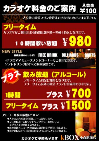 2008年12月9日 カラオケ☆アルコール飲み放題始めました☆ 最大10時間歌い放題!フリードリンク! お一人様・980円! に加え、新たにアルコールの飲み放題プランもご用意致しました。 料金は、 10時間歌い放題 + 1時間飲み放題で 980円 + 700円 10時間歌い放題 + 10時間飲み放題で 980円 + 1500円 となっております。 もちろん、アミューズコーナーでも遊べます! ぜひ遊びに来てください。