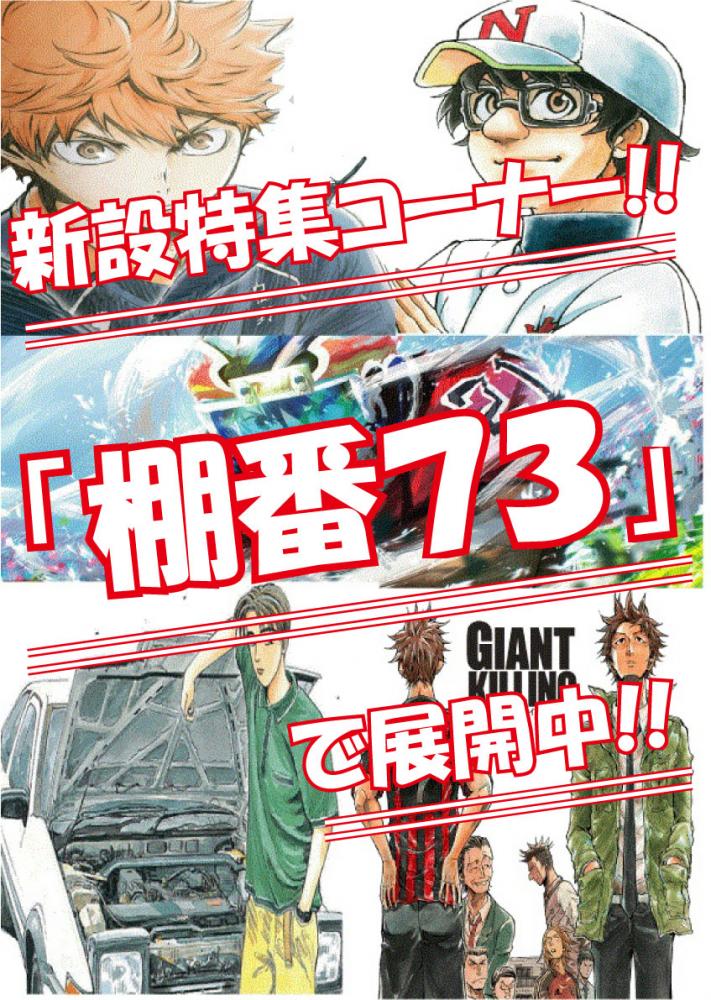 2022年10月23日 新設コミック特集コーナー!! 新しいコミック特集コーナーを展開しました!! 今回のテーマは「スポーツマンガ」です。 懐かしい作品、話題になった作品などから選別しました!! 〇「ハイキュー」 週刊少年ジャンプ 2012年から2022年連載 全45巻 2人の主人公を中心としたバレーボール部が全国大会を目指し、強豪校に挑みながら成長していく物語♪♪ 現実世界でありそうな試合展開や日常が描かれていることが大評価!! 〇「アイシールド21」 週刊少年ジャンプ 2002年から2009年連載 全37巻 パシリにより鍛えられた俊足を見込まれ、強制的にアメフト選手にされた小早川瀬名。選手登録名「アイシールド21」としてアメフト界の最高峰であるクリスマスボウルを目指し、仲間たちと共に様々な強敵を相手に奮闘する☆☆ 〇「 GIANT KILLING 」 週刊モーニング 2007年から連載中 既刊61巻 達海猛35歳、職業サッカー監督。現役時代も監督になってからも、好物は「番狂わせの大物喰い=ジャイアント・キリング」! これがフットボール漫画の新スタンダード!! 〇「グラゼニ」 週刊モーニング 2011年から2014年連載 全17巻 プロ野球選手としては決して一流とは言えない選手、凡田夏之介。 「 グラウンドには銭が埋まっている」略して「グラゼニ」を胸に、プロ野球選手としての生活に励む。 他にも多数の作品を特集しています。 話題になった作品をiBOXでもう一度見返してみませんか? ご来店お待ちしています!!