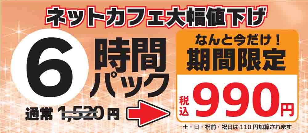 2022年6月30日 行橋店限定告知!! いつもご利用、ご来店誠にありがとうございます。 ご好評頂いております。 「6時間パック」1,520円→税込990円! ※土・日・祝日は110円加算されます。 お客様のご要望にお答え致しまして 7月以降も継続致します! 暑い季節、涼しく空間で この夏、コミック、動画をお友達と楽しむのはどうですか? きっと楽しい夏の思い出になると思います。 もちろんお1人様で、リラックスするのもオススメです。 皆様のご来店をスタッフ一同、心よりお待ちしております。