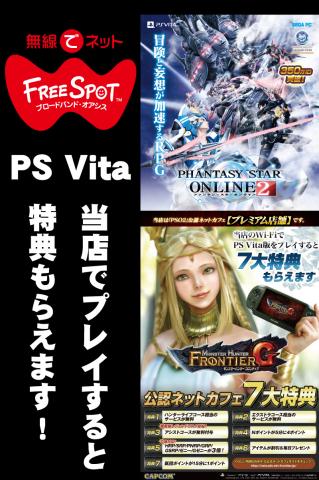 2015年4月11日 Wi-Fi公認タイトルのご案内 iBOX折尾店でWi-FiでPS Vita版『モンスターハンターフロンティアG』『PSO2』をプレイするとネットカフェ特典がもらえます!! もちろんPC版も無料でプレイできます♪ ※室料は別途発生致します。 詳しくは、当店スタッフまでお尋ね下さい。 ■登録方法簡単なので是非ご利用下さい■ 皆様のご来店、お待ちしております。