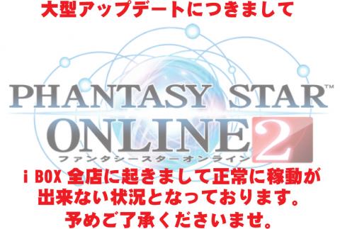 2012年9月12日 当店PSO2プレイヤーの皆様へ(9/13更新) 【更新】9/13 9:00 PSO2アップデートによるサーバー負荷不具合対応状況 いつもご利用ありがとうございます 先日の大型アップデートに伴いまして、当店では利用を見合わせておりましたが、9/13 午前9:00より、全店ハイスペック席でのサービス提供を再開致しております。 このたびは、ユーザー様に不便をお掛けしてしまい、大変申し訳ありません。 今後とも、iBOXのご利用の方 宜しくお願い致します。