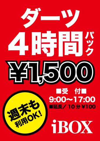 2012年5月23日 ダーツ4時間パック開始♪ ダーツプレイヤーの皆様、お待たせ致しました♪ 23日よりダーツ4時間パックを開始致します。 受付時間は、午前9時〜午後17時までです。 土日・祝も上記受付時間であれば、4時間投げ放題となっていますので、がっつり投げたい方は是非アイボックスをご利用くださいませ。 ※オンラインダーツ設置店のみとなります