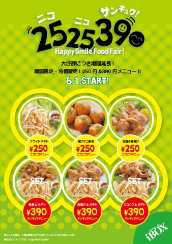 2010年5月31日 6月も「ニコニコサンキュ〜!!」^^ 「252539フェア」 皆様に大変ご好評な為、6月も引き続き開催決定!! 唐揚げ、フライドポテト、たこ焼きが250円! セットも390円と驚きの低価格! ゲームをしながら、コミックを読みながら、カラオケでワイワイしながら 是非ご賞味ください。 290円の格安「丼フェア」も好評開催中です。 皆様からの「ご注文」お待ち致しております^^