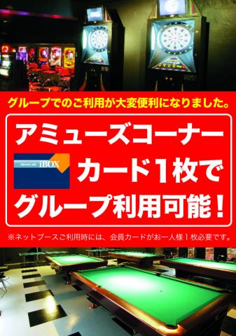 2010年4月1日 グループさんいらっしゃ〜い♪ いつも当店をご利用頂き誠にありがとうございます。 iBOXでは4/1より、アミューズコーナーでのグループ利用が、代表者の会員カード1枚で可能となりました★★ 新入生・新社会人の皆様、ぜひこの機会にiBOXで交流を深めてみてはいかがでしょうかp(^0^)q ※なおネットブースご利用時には、会員カードがお一人様1枚必要となります。その他ご不明な点がございましたら、お気軽にスタッフまでお尋ね下さい。