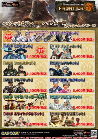2010年4月15日 MHF 新商品販売開始!! 本日よりMHF(モンスターハンターフロンティアオンライン)に新商品が追加! 「MHFイクスキット」 「MHFリアンキット」 もちろん他キットやパックなども好評販売中^^ ペイネット公認店のiBOXなら、どの店舗でも購入可能です! ネットカフェでしか手に入れられないアイテムでより高みを目指そう!!